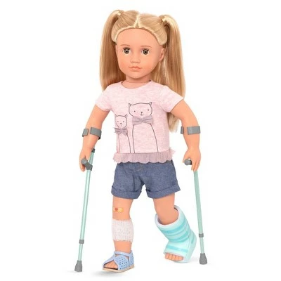 - Collar, leg cast, and crutches easily wrap around your Our Generation dolls to get back to happy health