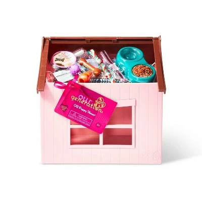 - Dog house accessory set for 18-inch dolls and 6-inch plush dogs