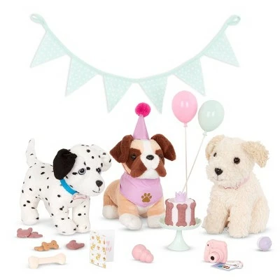 - 20-piece Pet Birthday Set: celebrate your puppyโs special day with the Our Generation Party Pups set!