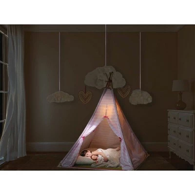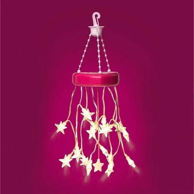 Enjoy sweet dreams with the Our Generation Suite Tent, a delightful accessory for kids to share with their 18-inch dolls. Whether you’re telling funny stories or sharing secrets under the starlight, the Suite Tent is the perfect place to have all kinds of adventures. This easy-to-assemble fabric tent is approximately 47.5″ (L) x 47.5″ (W) x 59″ (H), the perfect size to share with a doll friend (or two)! This pretty pink and white tent is ideal for an indoor camping trip, a sleepover, or other fun adventures. Just tie back the tent’s entrance with the bright pink bows to welcome visitors and let your journeys begin! During nighttime, your dreams will be even sweeter with the gorgeous glow of the starlight chandelier. Hang it up inside the tent on the loop, turn it on, and let starlight, star bright wish you a good night. It also makes a wonderful night light for those times when a little bit of extra starlight helps you sleep tight. (Dolls sold separately)