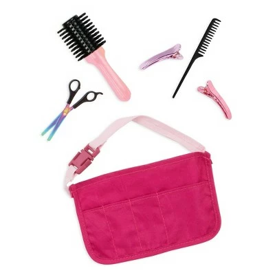 - Includes: 18-inch doll, outfit, stylist apron, brush, comb, 2 hair clips, and pretend scissors.